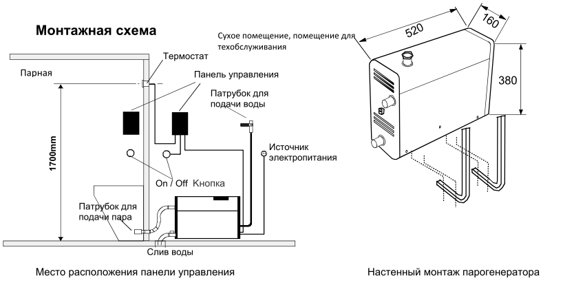 Для работы Helo Steam Pro 77 требуется подключение к воде, желательно смягченной или деминерализованной, а также необходимо приобрести пульт управления Pure или Elite. Дополнительно можно купить дренажный клапан для автоматического слива и промывки.
