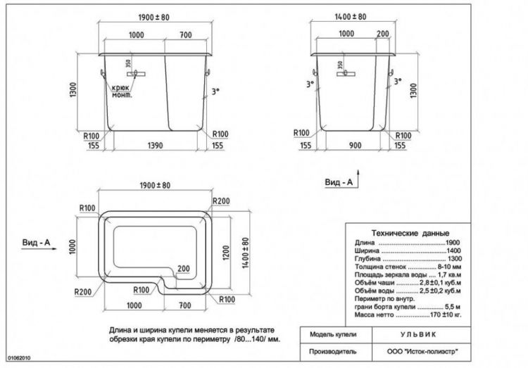 | Днище бассейна | Ровное |