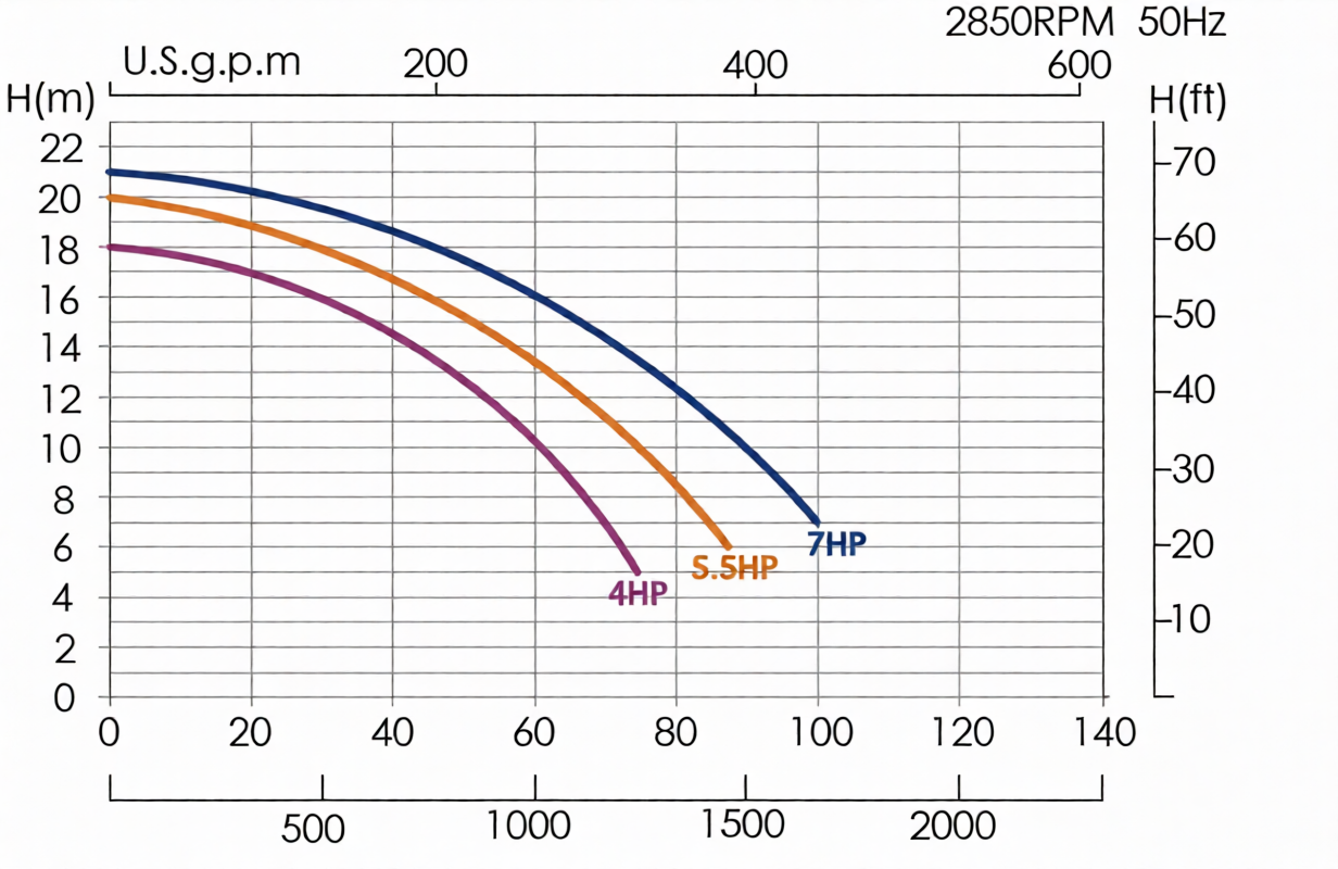 Напорные характеристики насоса Насос 3,0кВт 380В Emaux UPH 400