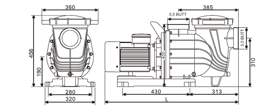 Насос с префильтром LX SLP1000T – предназначен для использования напорной подачи и циркуляции воды в больших и средних бассейнах с пресной и морской водой. Длительная работа при средней температуре 75 ℃ применимо к циркуляции воды из горячих источников.
