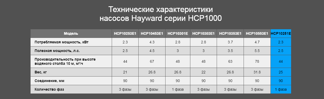 Насос Hayward HCP10251E KA250 M.B (220 В, 44 м3/ч, 2.5 HP)