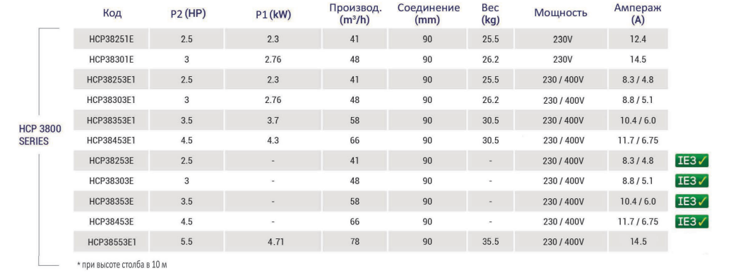 Основные технические характеристики Насоса Hayward HCP38251E KAP250 M.B