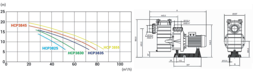Напорные характеристики насоса Hayward HCP38251E KAP250 M.B