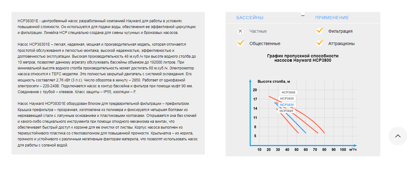 | Производительность, м³/ч (при h) | 48 при 10 м |