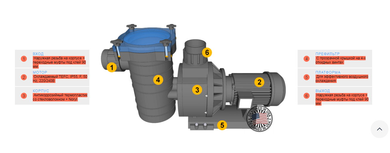 Насос Hayward HCP38301E c префильтром для коммерческих бассейнов. Используется для фильтрации и циркуляции воды. Линейка HCP была разработана компанией Хэйуорд как надежная альтернатива тяжелым чугунным и бронзовым насосам для коммерческого применения. Изготовлены из легкого прочного термопластика, обогащенного стекловолокном. Гидравлические узлы из Noryl позволяют использовать насосы с соленой и морской водой. Оснащен префильтром большой емкости. Прозрачная крышка префильтра на 4-х легкооткидных винтах из нержавейки. В насосе используется высокомощный охлаждаемый мотор TEFC.