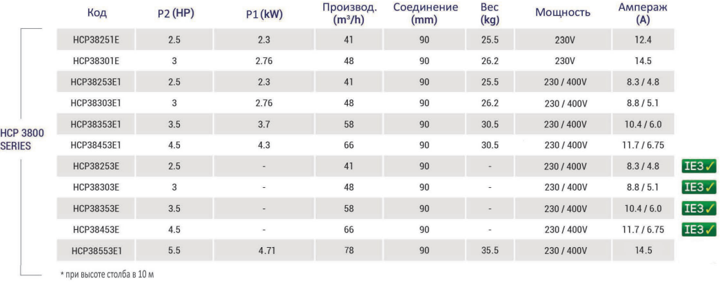Основные технические характеристики Насоса HCP38303E KAP300 T1 IE3