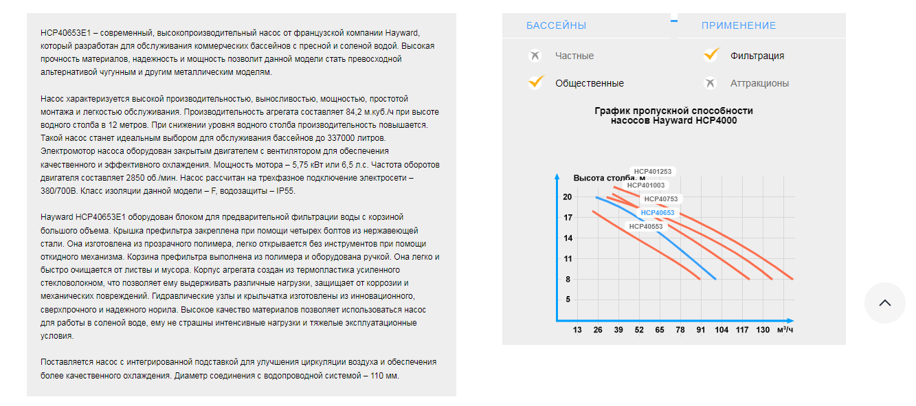 | Производительность, м³/ч (при h) | 84.2 при 12 м |