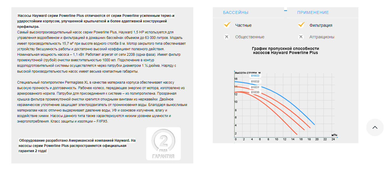 | Макс. объем обслуживаемого бассейна, л. | 64 000 |