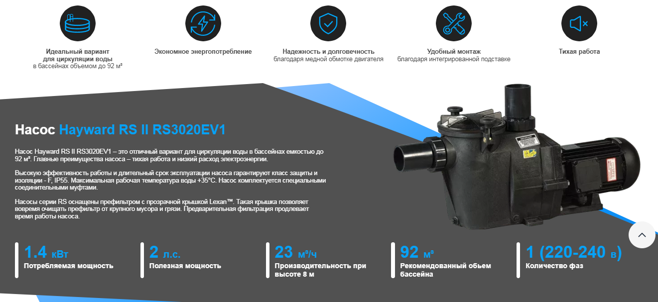 Насос Hayward RS3020EV1 (220 В, 23 м3/ч, 2 HP)