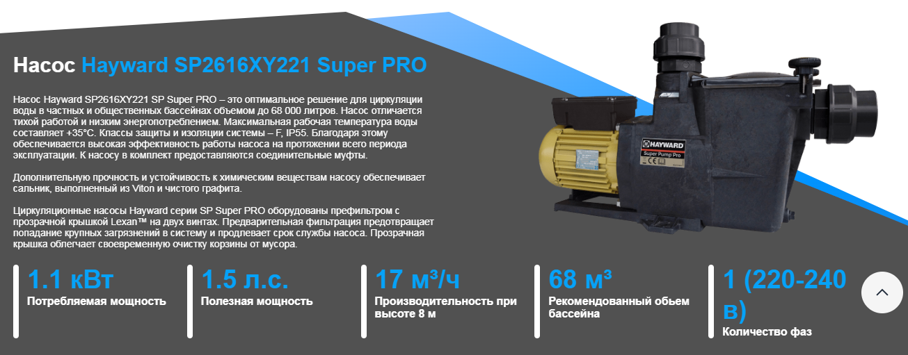 Насос Hayward SP2616XY221 Super Pro (220 В, 17 м3/ч, 1.5 HP)