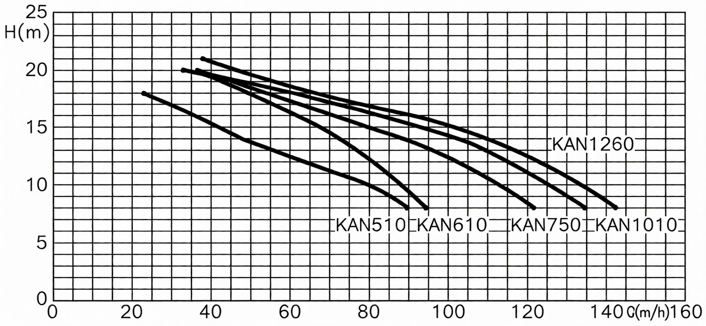 Напорные характеристики насоса Kripsol KAN-760 Т1.В (7кВт 230/400В)