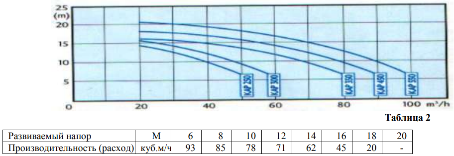 Напорные характеристики насоса Kripsol Kapri KAP-450 (4,04кВт 380В)