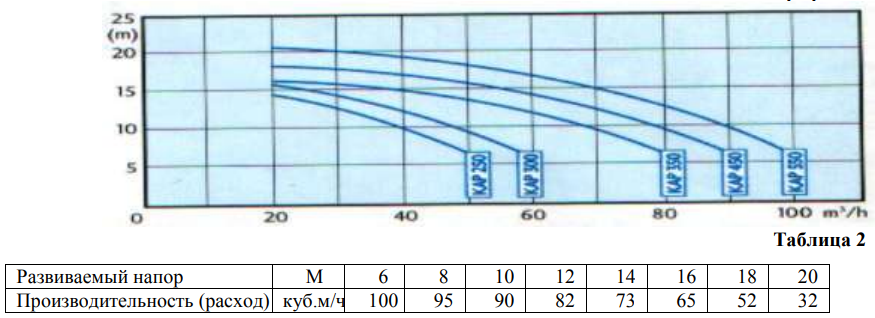 Напорные характеристики насоса Kripsol Kapri KAP-550 (4,71кВт 380В)