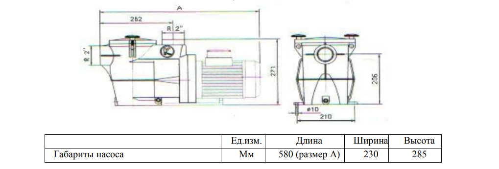 | Внутренняя резьба всасывающего трубопровода | дюйм | 2 |