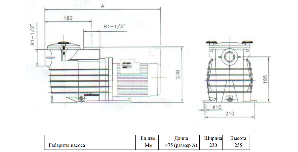 | Внутренняя резьба напорного трубопровода | дюйм | 1 1/2" |