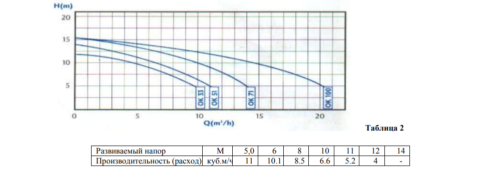Напорные характеристики насоса Kripsol Ondina OK-51 (8,5 м3/ч 220В)