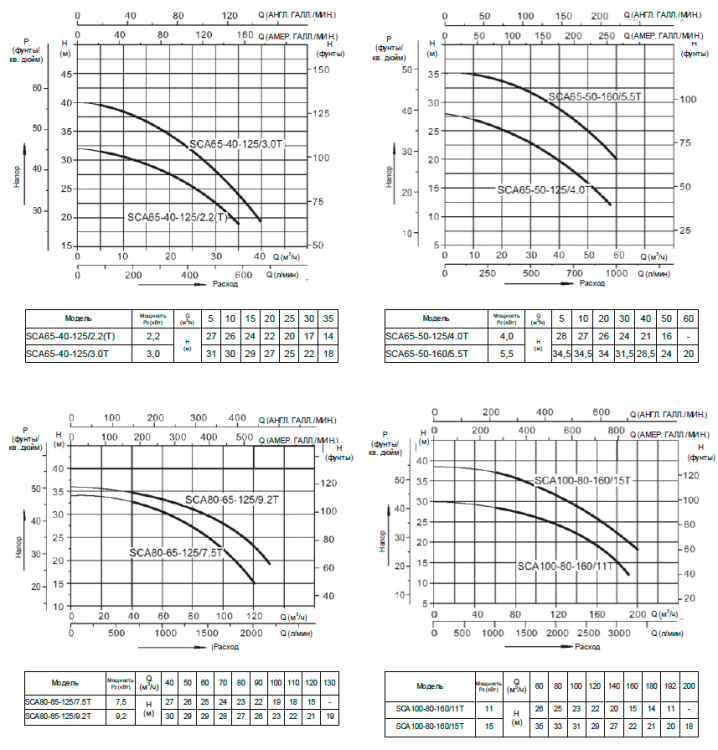Технические характеристики насоса SCA65-50-160/5.5T: