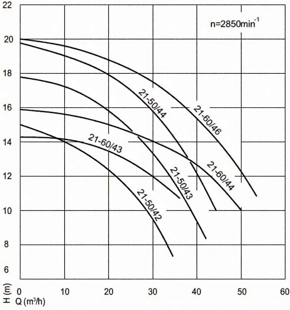 Напорные характеристики насоса Speck BADU 21-50/43 G: