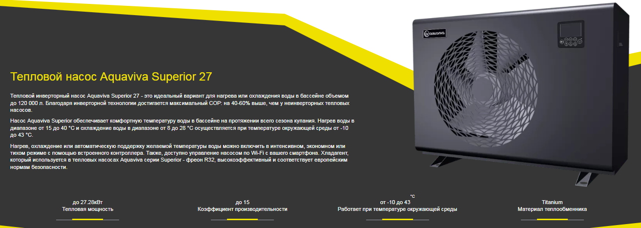 Тепловой инверторный насос Aquaviva Superior 27 (27.28 кВт) WiFi