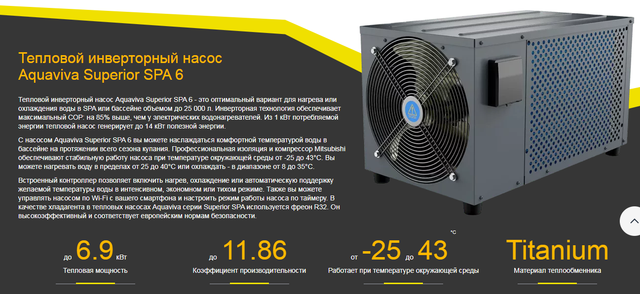 Тепловой инверторный насос Aquaviva Superior SPA 6 (6.1 кВт)