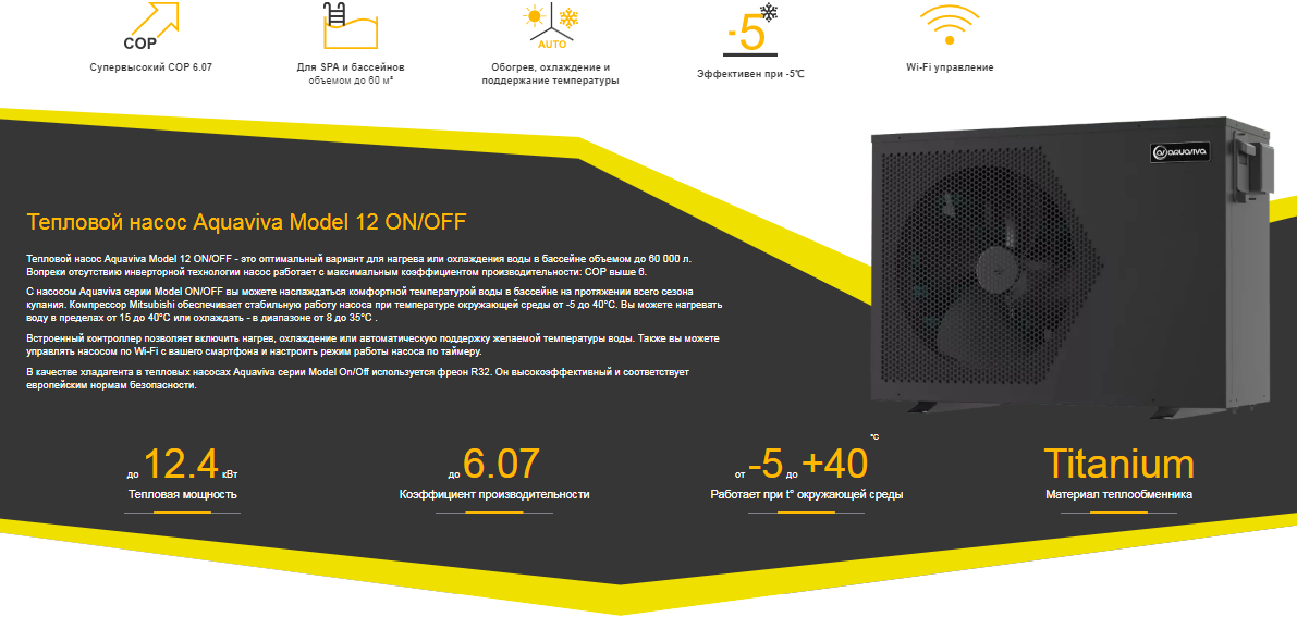 Тепловой насос Aquaviva Model 12 ON/OFF (12.4 кВт)