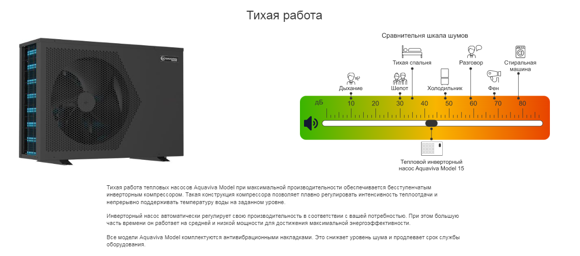 Тепловой инверторный насос Aquaviva Model 15 FI15RW обладает впечатляющими техническими характеристиками. Устройство отличается высокой производительностью и эффективностью, что позволяет поддерживать необходимую температуру воды в бассейне при минимальных затратах энергии.