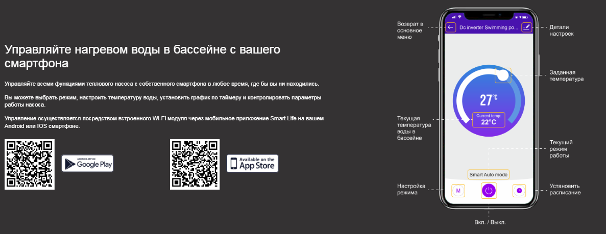 Современные технологии делают использование насоса еще более удобным. Aquaviva Model 15 FI15RW поддерживает Wi-Fi управление через приложение Smart Life, которое можно скачать на Google Play или App Store. Это позволяет вам контролировать и настраивать работу насоса прямо со своего смартфона, где бы вы ни находились. .