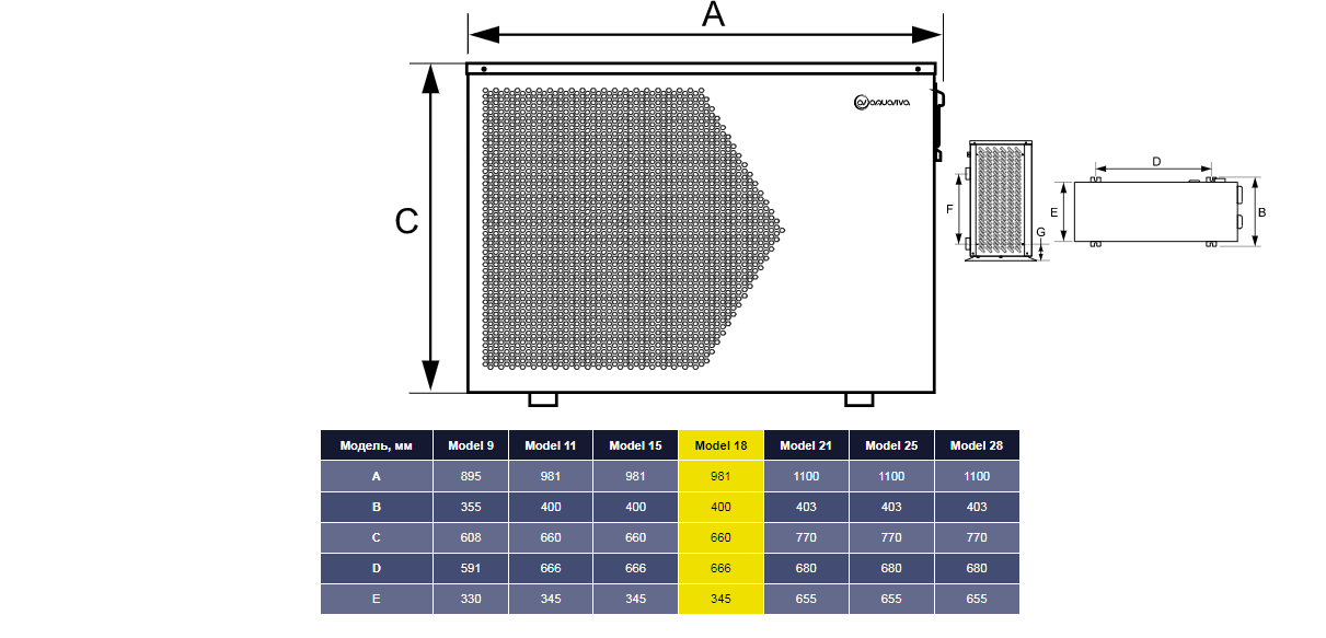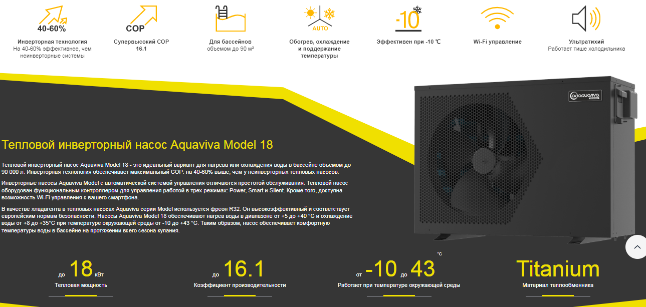 Тепловой насос Aquaviva Model 18 инвертор (35-70 м3, тепло /холод, 18 кВт, -10С, WiFi)