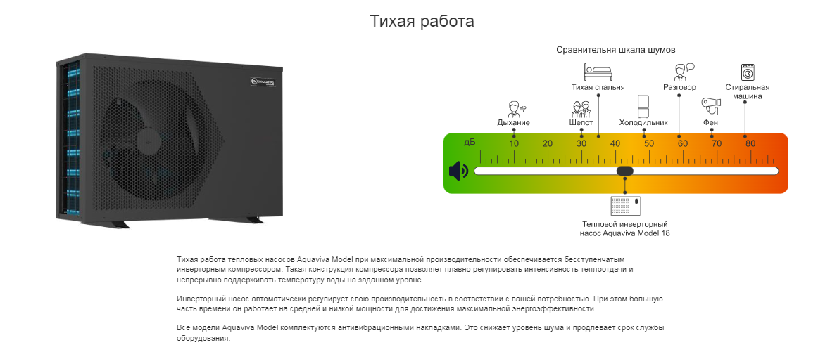 Тепловой инверторный насос Aquaviva Model 18 FI18RW – это идеальный вариант для нагрева или охлаждения воды в бассейне объемом до 70 м3. Устройство продлит купальный сезон и обеспечит высокий уровень комфорта. Гибкая система работы в трех режимах – «Power», «Smart» и «Silent», обеспечивает плавное регулирование производительности, благодаря чему достигается необходимая температура воды в бассейне на оптимальном уровне эффективности. Насос оснащен титановым теплообменником, который позволяет работать с хлорированной и морской водой, гарантируя надежную и долговечную работу устройства без коррозии. Также, доступно Wi-Fi управление с вашего смартфона, через приложение Smart Life, которое можно загрузить на Google Play или App Store.