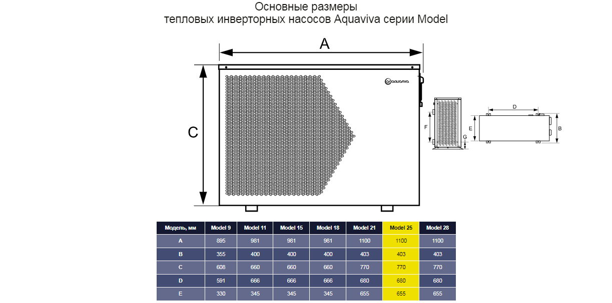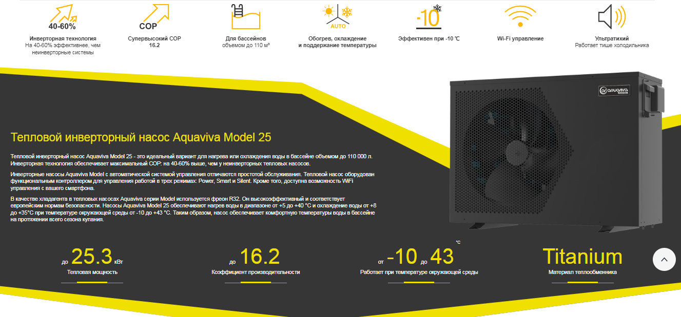Тепловой насос Aquaviva Model 25Т инвертор (55-90 м3, тепло /холод, 25,3 кВт, -10С, WiFi)