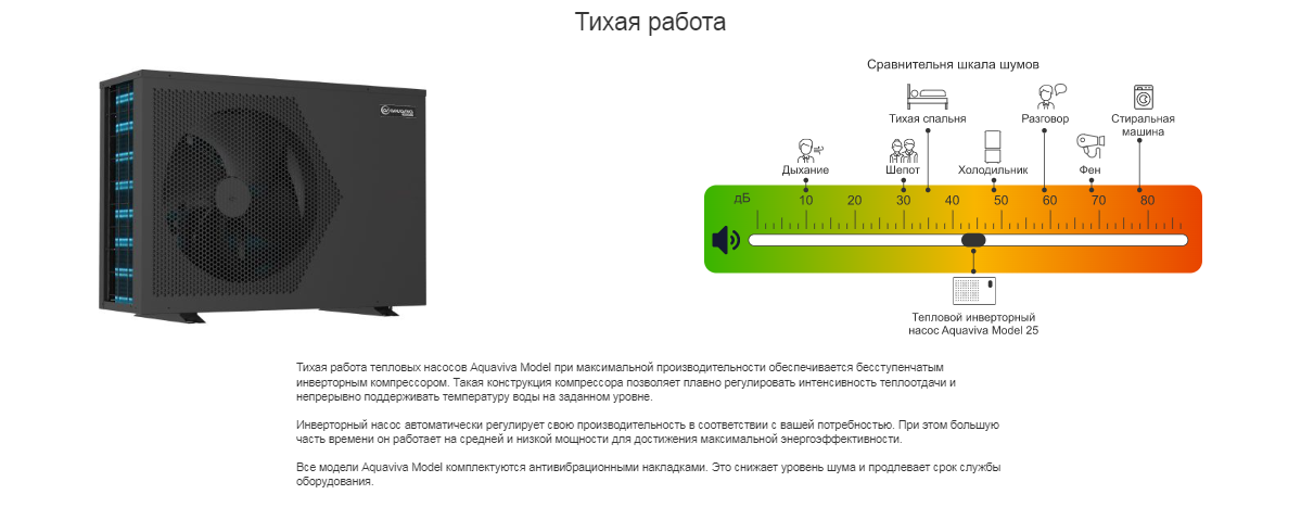 Тепловой инверторный насос Aquaviva Model 25 FI25RW – это идеальный вариант для нагрева или охлаждения воды в бассейне объемом до 90 м3. Это устройство позволяет поддерживать комфортную температуру воды, обеспечивая длительное удовольствие от плавания. Устройство продлевает купальный сезон, предоставляя высокий уровень комфорта и эффективности.