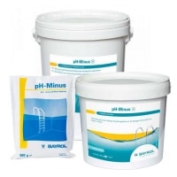 Если значение РН меньше 7.0, то его необходимо повысить РН– плюсом. Чтобы повысить РН на 0,1 необходимо 100 гр. РН– плюса добавить на каждые 10 куб.м. воды. Если значение РН больше 7,4, его необходимо снизить РН– минусом. Для снижения РН на 0,1, необходимо 100 гр. РН– минуса добавить на каждые 10 куб.м. воды. РН– плюс или РН– минус необходимо разводить в ведре с теплой водой и вливать в бассейн перед форсункой(сопло обратной подачи воды), или порциями подавать в нескольких местах, но только не перед скиммером.